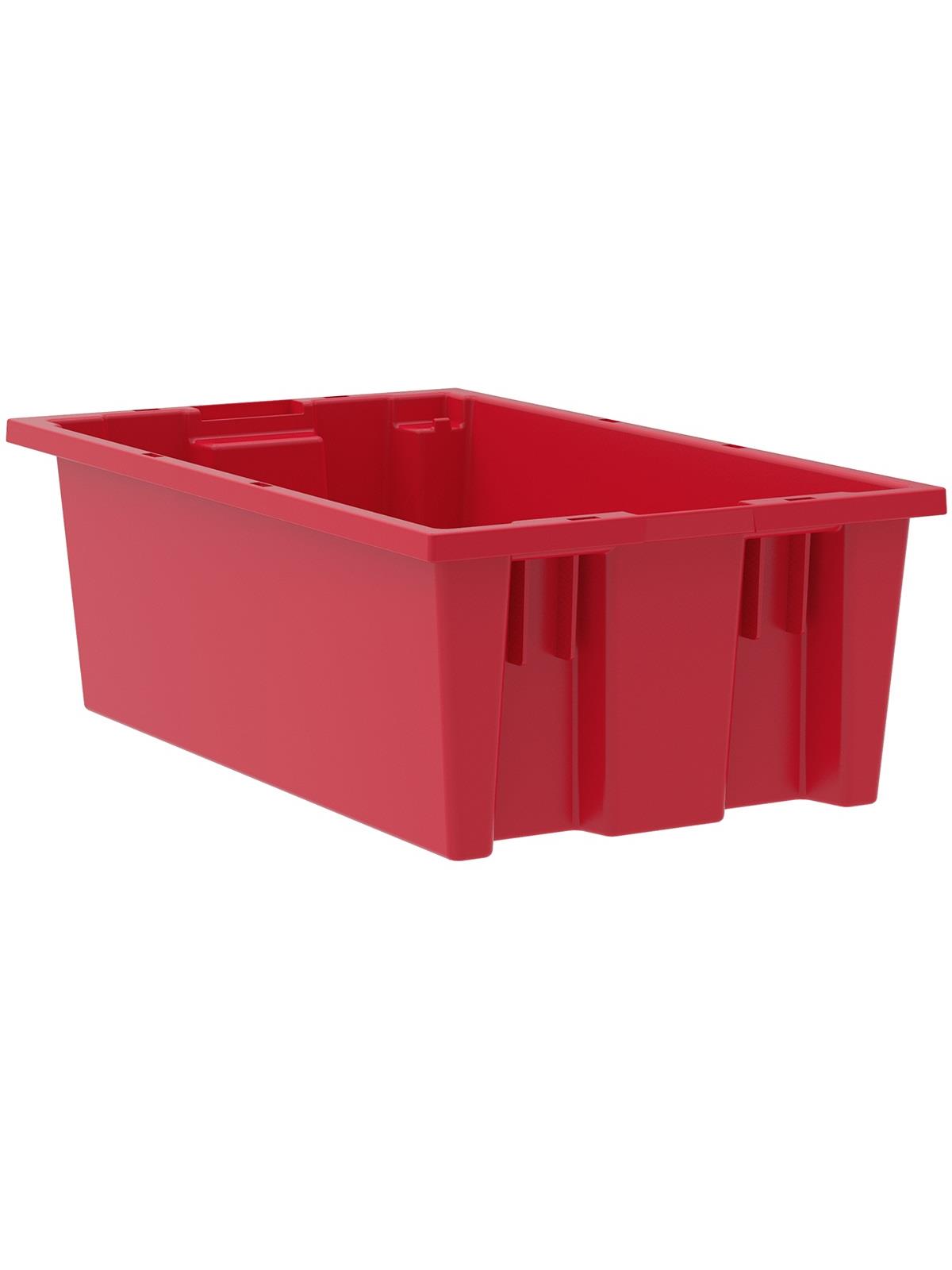 Heavy-duty construction provides a superior service life resulting in lower replacement costs than “budget-priced” totes. Smooth surfaces are easy to clean and are resistant to most solvents and chemicals. Available optional lids protect contents from dust and damage. Stackable with or without lids for shipping. When empty and without lids, totes nest for space saving storage. Available in Red, Blue, or Gray. Gray totes manufactured from FDA-approved materials. FOB Shipping Point.
