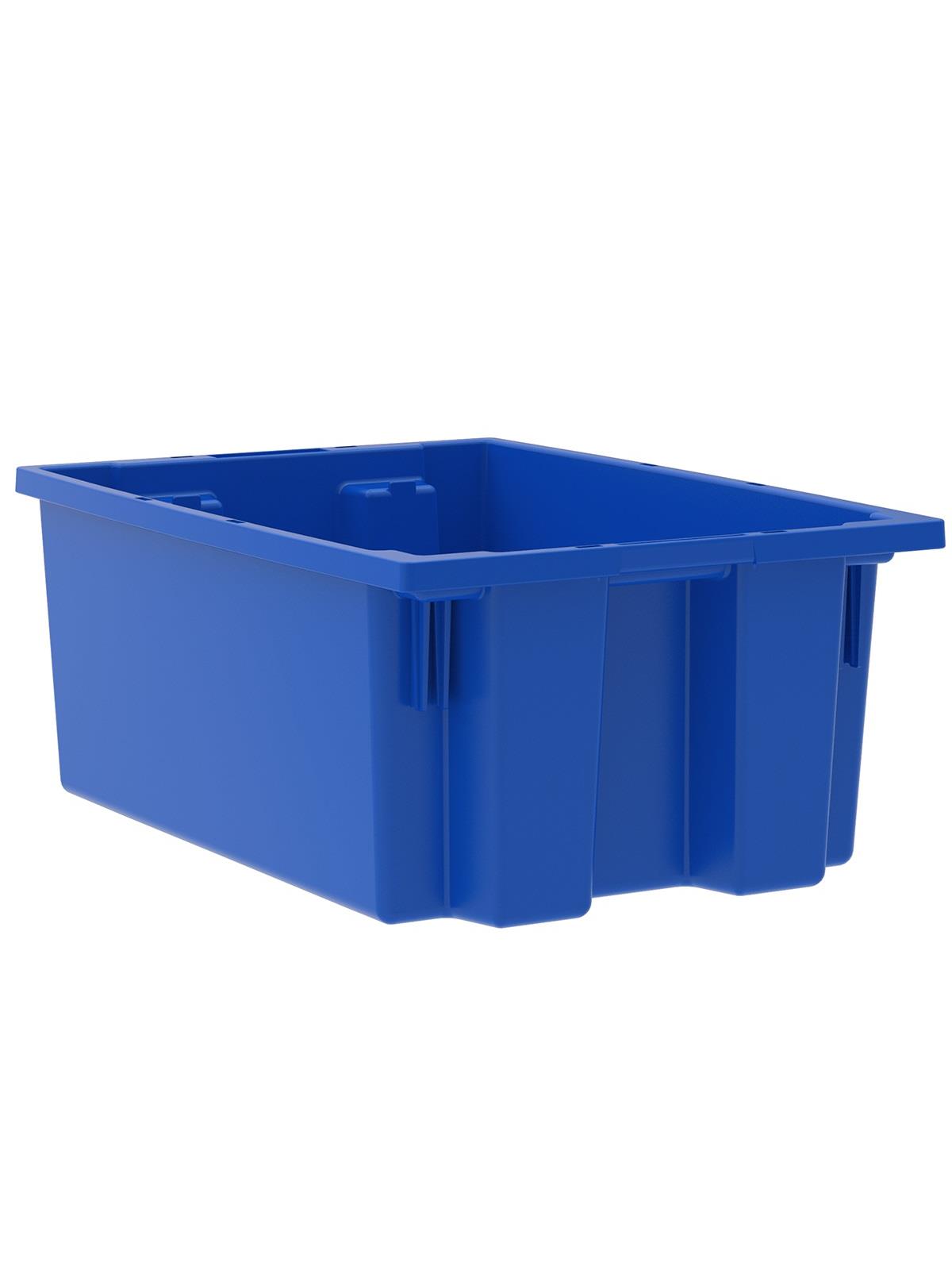 Heavy-duty construction provides a superior service life resulting in lower replacement costs than “budget-priced” totes. Smooth surfaces are easy to clean and are resistant to most solvents and chemicals. Available optional lids protect contents from dust and damage. Stackable with or without lids for shipping. When empty and without lids, totes nest for space saving storage. Available in Red, Blue, or Gray. Gray totes manufactured from FDA-approved materials. FOB Shipping Point.