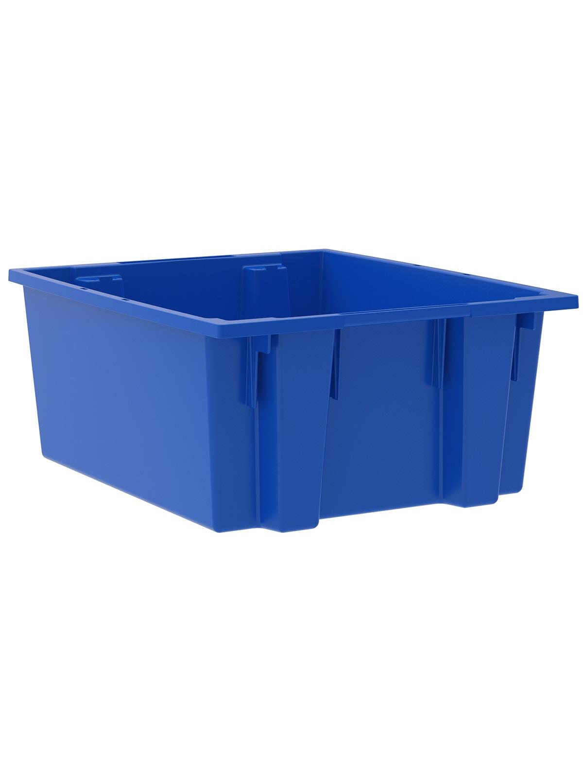 Heavy-duty construction provides a superior service life resulting in lower replacement costs than “budget-priced” totes. Smooth surfaces are easy to clean and are resistant to most solvents and chemicals. Available optional lids protect contents from dust and damage. Stackable with or without lids for shipping. When empty and without lids, totes nest for space saving storage. Available in Red, Blue, or Gray. Gray totes manufactured from FDA-approved materials. FOB Shipping Point.