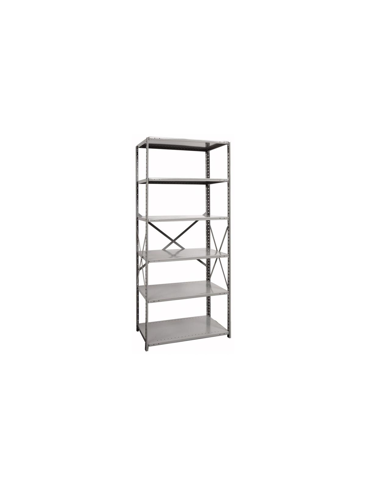 Shelves are box formed at front and back allowing high capacity storage with minimal deflection. Sides of shelves are triple flanged adding to shelf strength. Compression shelf clips improve overall unit capacity. Posts are punched to allow shelves to be adjusted top to bottom at 1-1/2” on center. Beaded front posts allow use of full shelf width and are common between adjoining units reducing assembly and installation time as well as reducing cost. Angle back posts can be bolted together when joining units side-by-side or back-to-back. Side and back sway braces eliminate units sway providing a safe storage solution. Color: Dark Gray (HG). FOB Shipping Point.