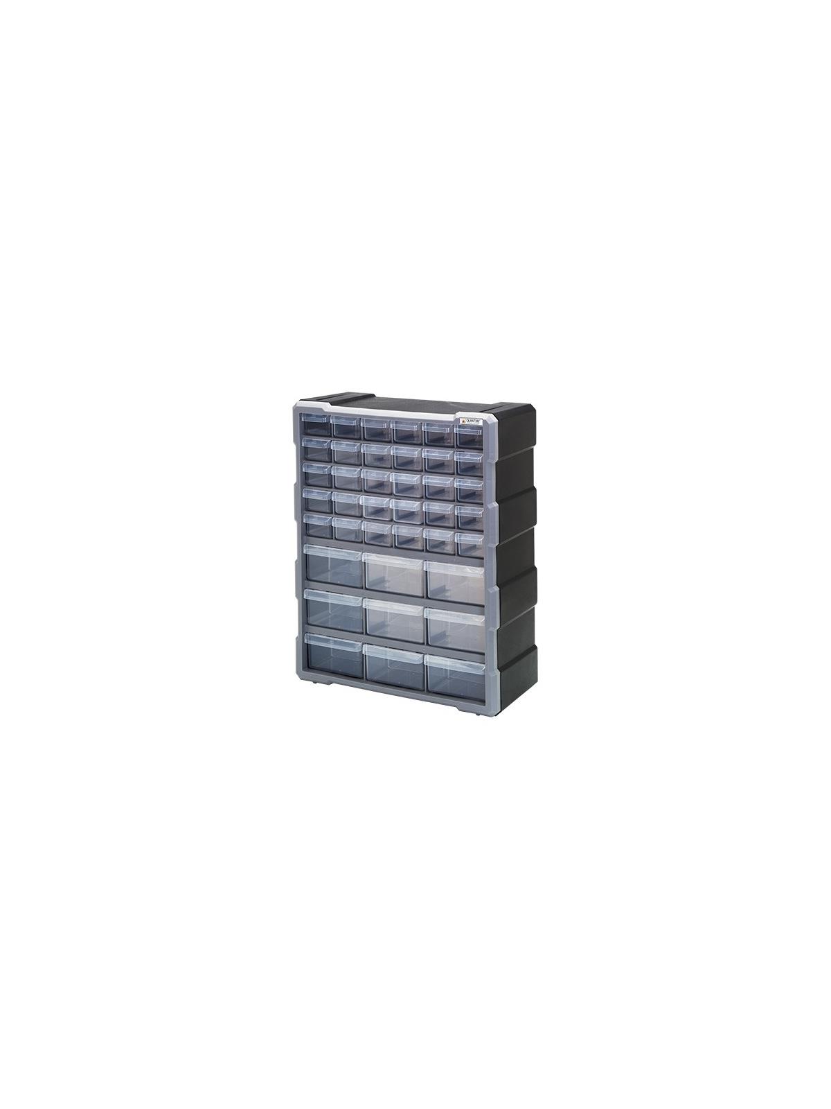 Heavy-duty reinforced construction with durable high impact polypropylene frame and clear polypropylene drawers and bins. See through drawers come with drawer dividers for every drawer. Stable stacking and mounting. Drawer stops prevent spills. Textured drawer pulls. FOB Shipping Point.