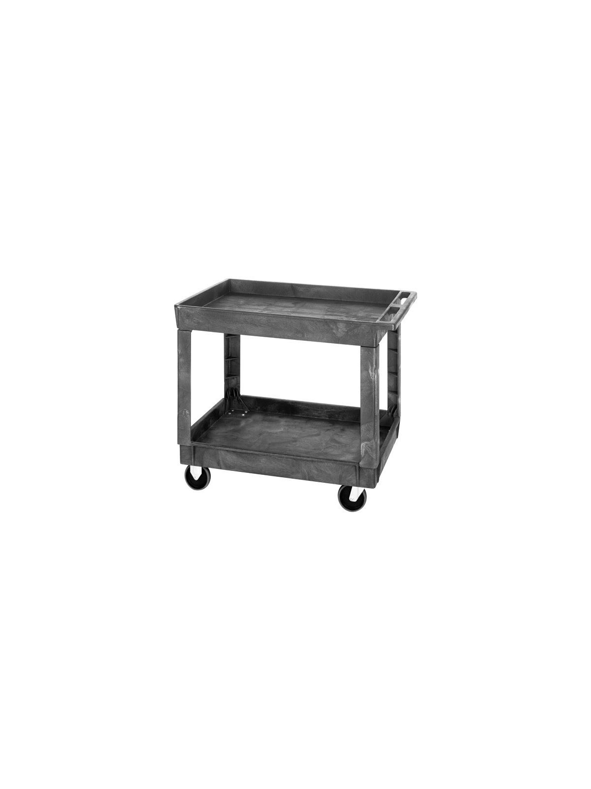 Genuine Quantum Plastic Mobile Carts. Ideal for many industrial and commercial material handling applications. Cart comes complete with 2 swivel and 2 rigid 5 x 1-1/4" heavy duty casters. Available in 2 sizes. Color is Gray. FOB Shipping Point.