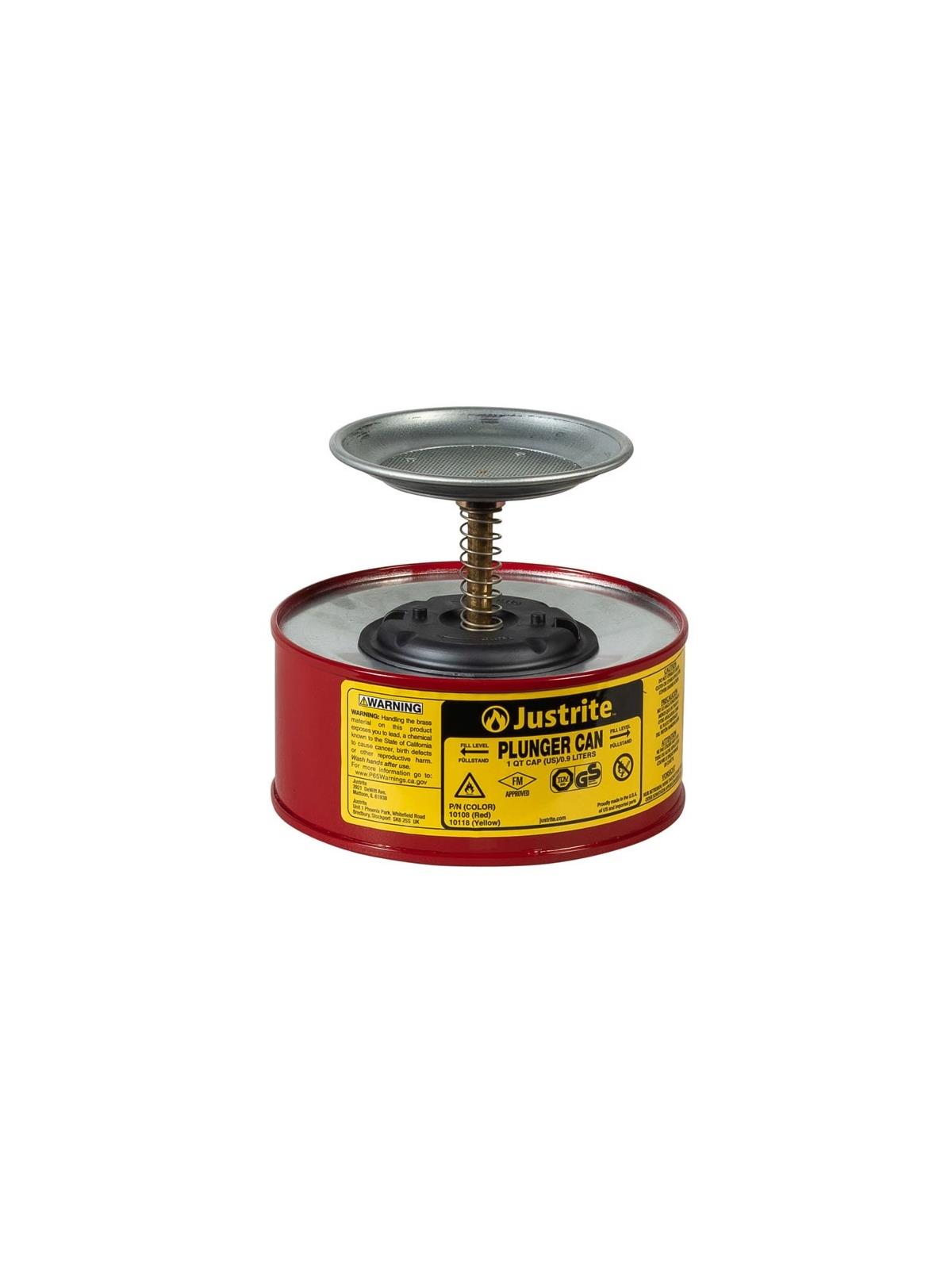 Easy to operate - just push down on pan and it automatically pumps liquids into pan to moisten sponge or rag. Surplus liquid drains back. Reduces the danger of exposed liquid. Perforated pan screen also serves as a flame arrester. Unique "smart pump" mechanism works up to a mere 1/4" fluid level saving time by refilling less often. More liquid comes to the top for easier moistening. Pump is constructed of brass and Ryton® for chemical resistance. Galvanized steel body is finished in a durable powder paint for long life. FM approved. FOB Shipping Point.