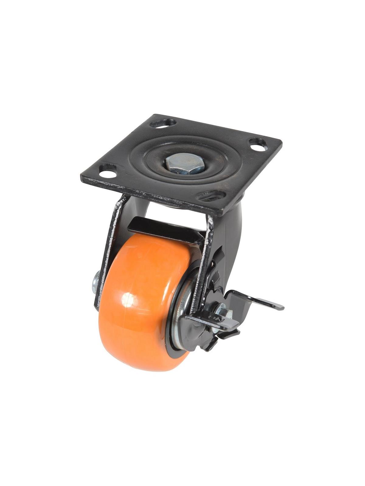 The perfect asset for an assortment of commercial and non-commercial settings. Swivel design allows the user to maneuver and change directions instantaneously. Wheel core is made of polypropylene. 95 /-5 Shore A. FOB Shipping Point.