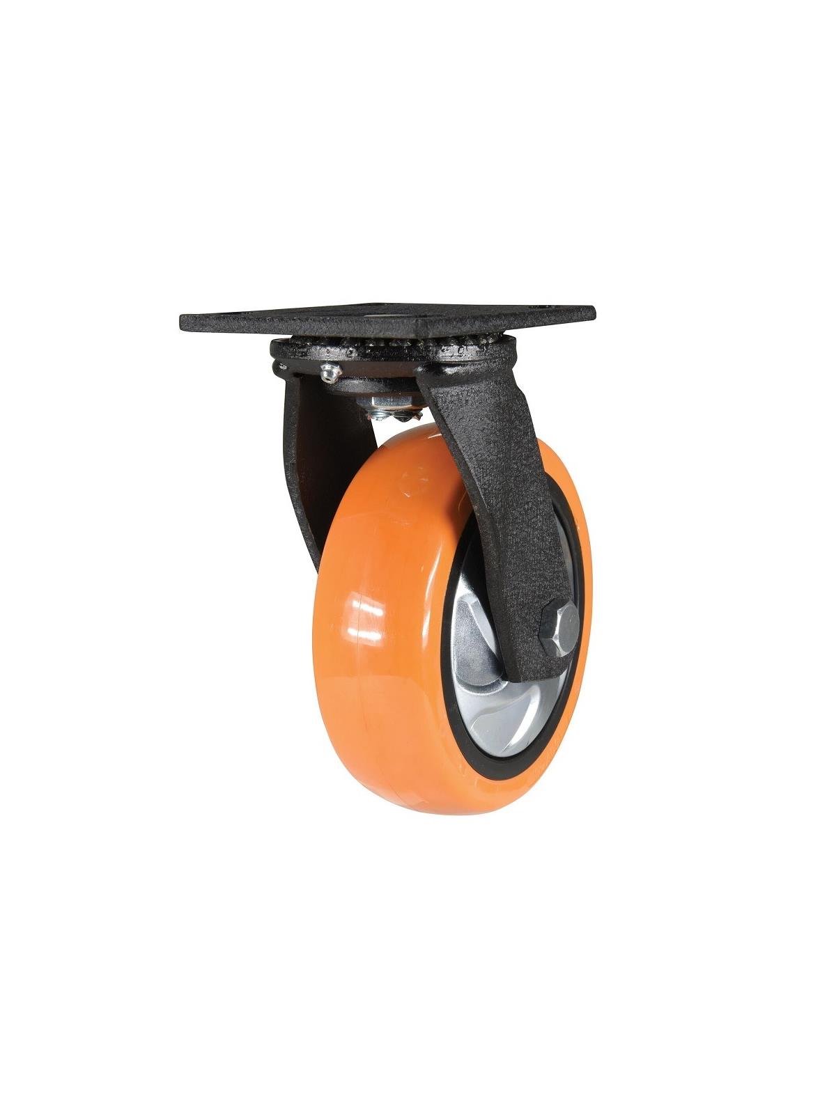 The perfect asset for an assortment of commercial and non-commercial settings. Swivel design allows the user to maneuver and change directions instantaneously. Wheel core is made of polypropylene. 95 /-5 Shore A. FOB Shipping Point.