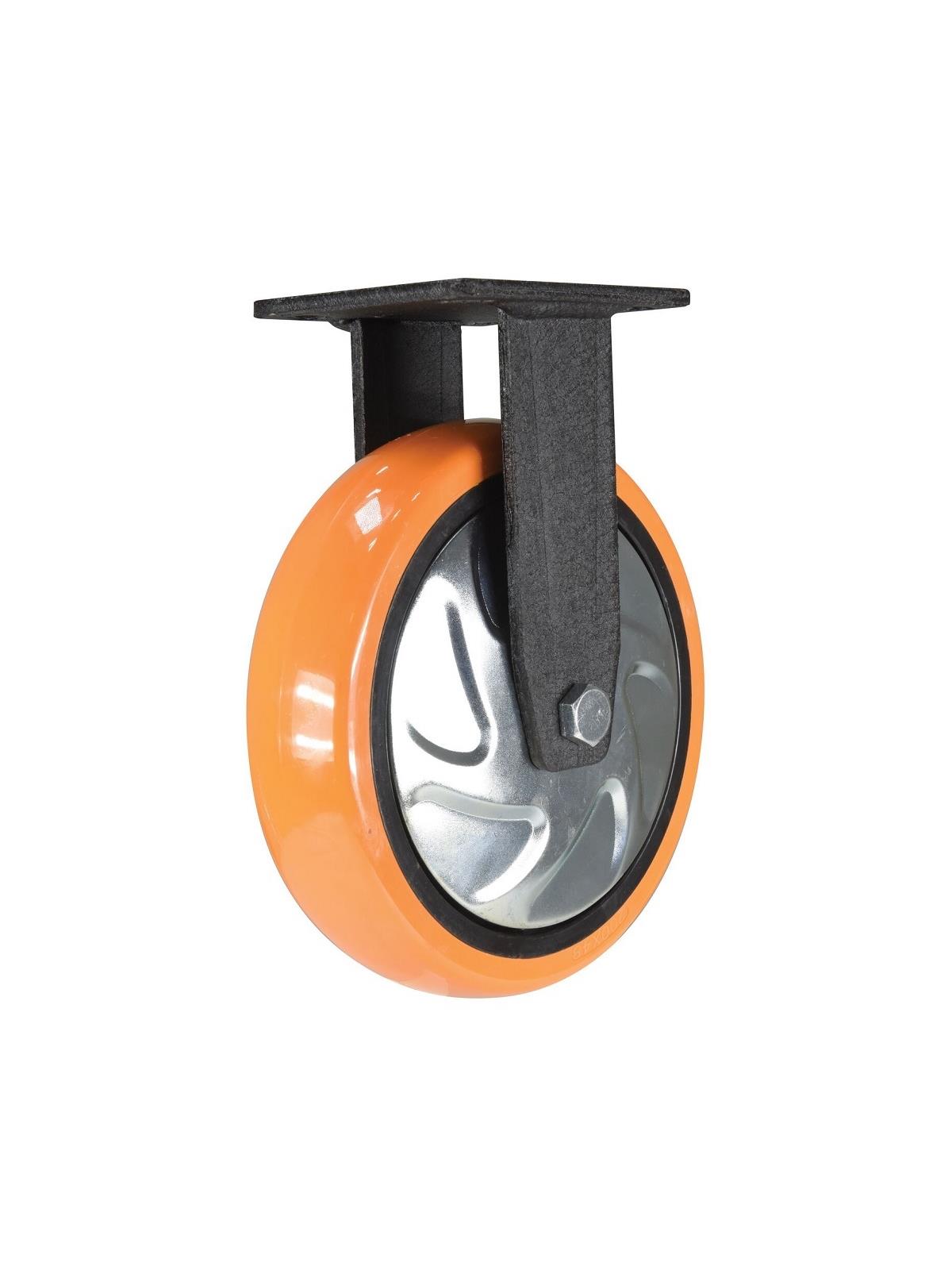 The perfect asset for an assortment of commercial and non-commercial settings. Swivel design allows the user to maneuver and change directions instantaneously. Wheel core is made of polypropylene. 95 /-5 Shore A. FOB Shipping Point.