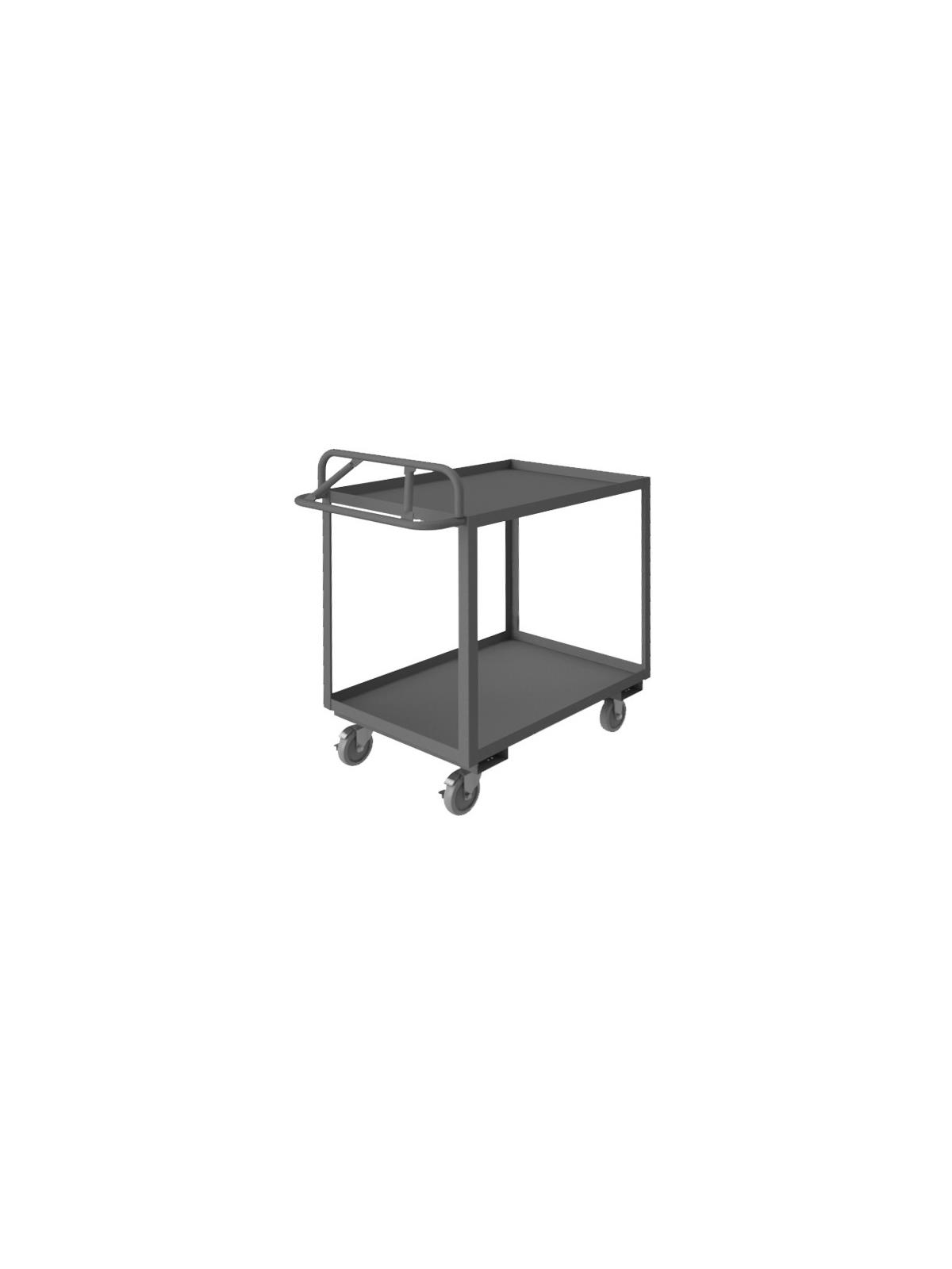 Constructed with 1-1/2" x 1/8" angle iron uprights for added strength. Heavy duty 14 gauge steel shelves. Sturdy, tubular, ergonomic handle has 3 positions ensuring maximum comfort. Standard units have 1-1/2" lips. ALD units have all lips down, TLD units have top lips down. Durable, gray, textured powder coat finish. FOB Shipping Point.