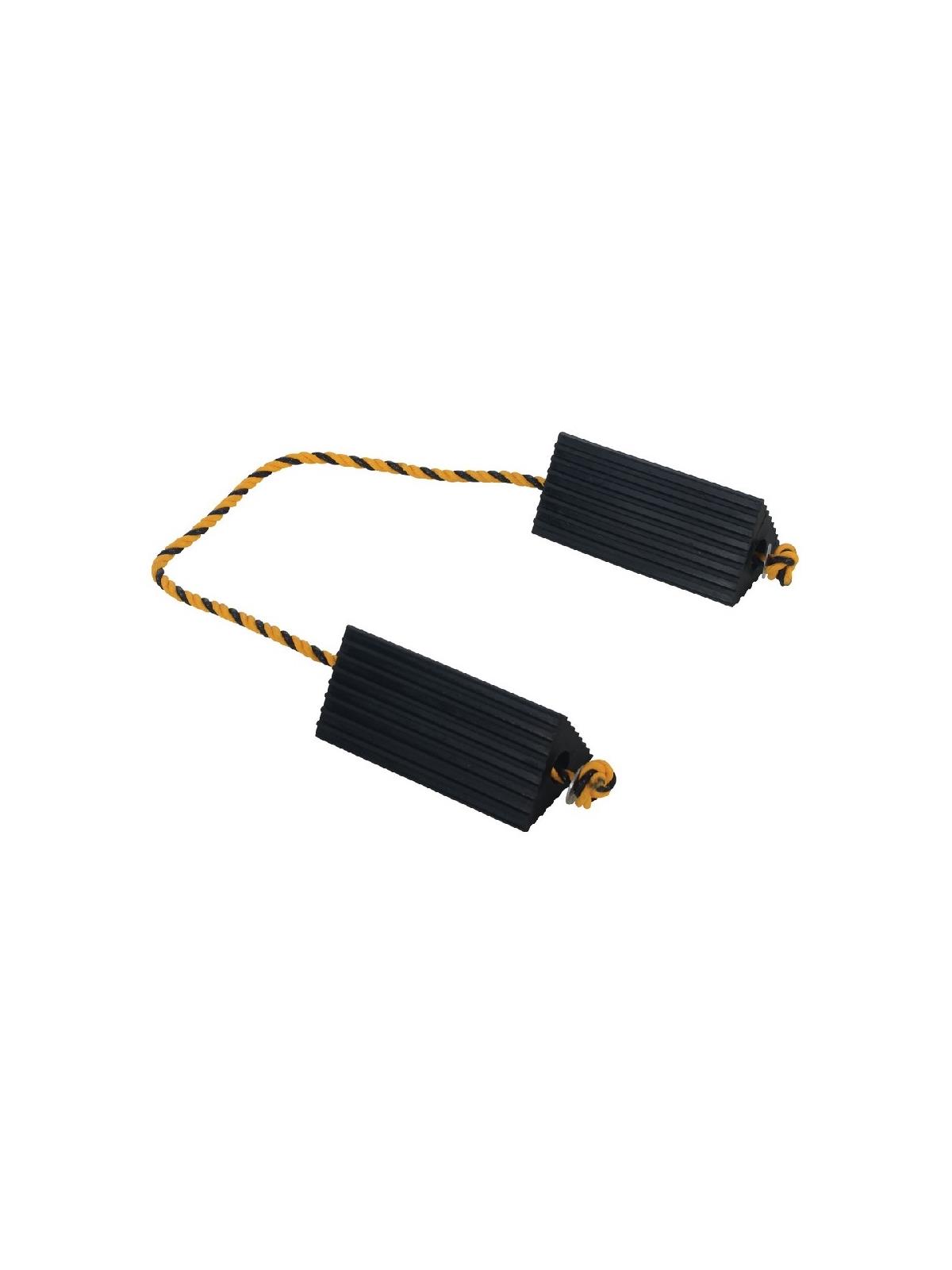 Constructed of reinforced rubber to provide a sure grip to virtually any surface. Curved surface contours to fit tires. Rubber resists tearing, abrasion, ozone weathering, etc. Functional design is durable in all weather conditions. Series HRWC-8 is constructed of a mix of virgin and recycled, no reinforcement cords. The Airline Chock is suitable for small and large aircraft. Model HAC-13 includes a 36" polypropylene rope between two chocks. FOB Shipping Point.