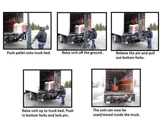 Stacker features emergency switch and battery indicator with a built-in charger. Casters include brakes. FOB Shipping Point.