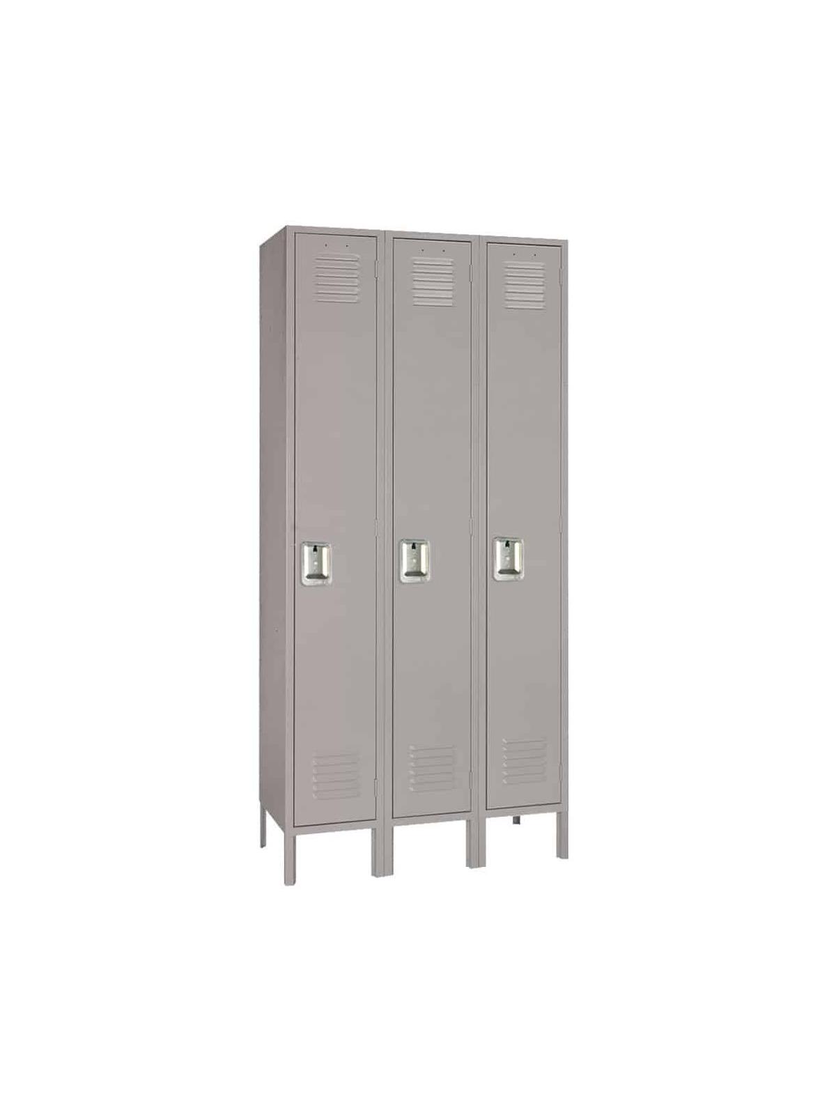 Lockers feature louvered doors for ventilation. Padlock attachments are an integral part of the handle (padlock not included). Factory assembled lockers feature pop rivet construction. FOB Shipping Point.