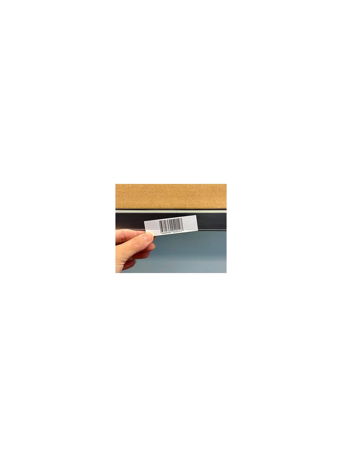 Excellent for bar codes, point-of-sale and price display. Stick the Slip•Strip™ one-piece label holder anywhere you need to mount or display bar codes, messages, prices or any other information. "Slip" label, sign or message through the open edge of the holder. Holds all sizes and types of labels. Made of heavy duty PVC with clear face, white backing and an aggressive, long-lasting adhesive. Adheres to any clean, dry surface and is easily cut to required length. Custom colors and sizes available. FOB Shipping Point.