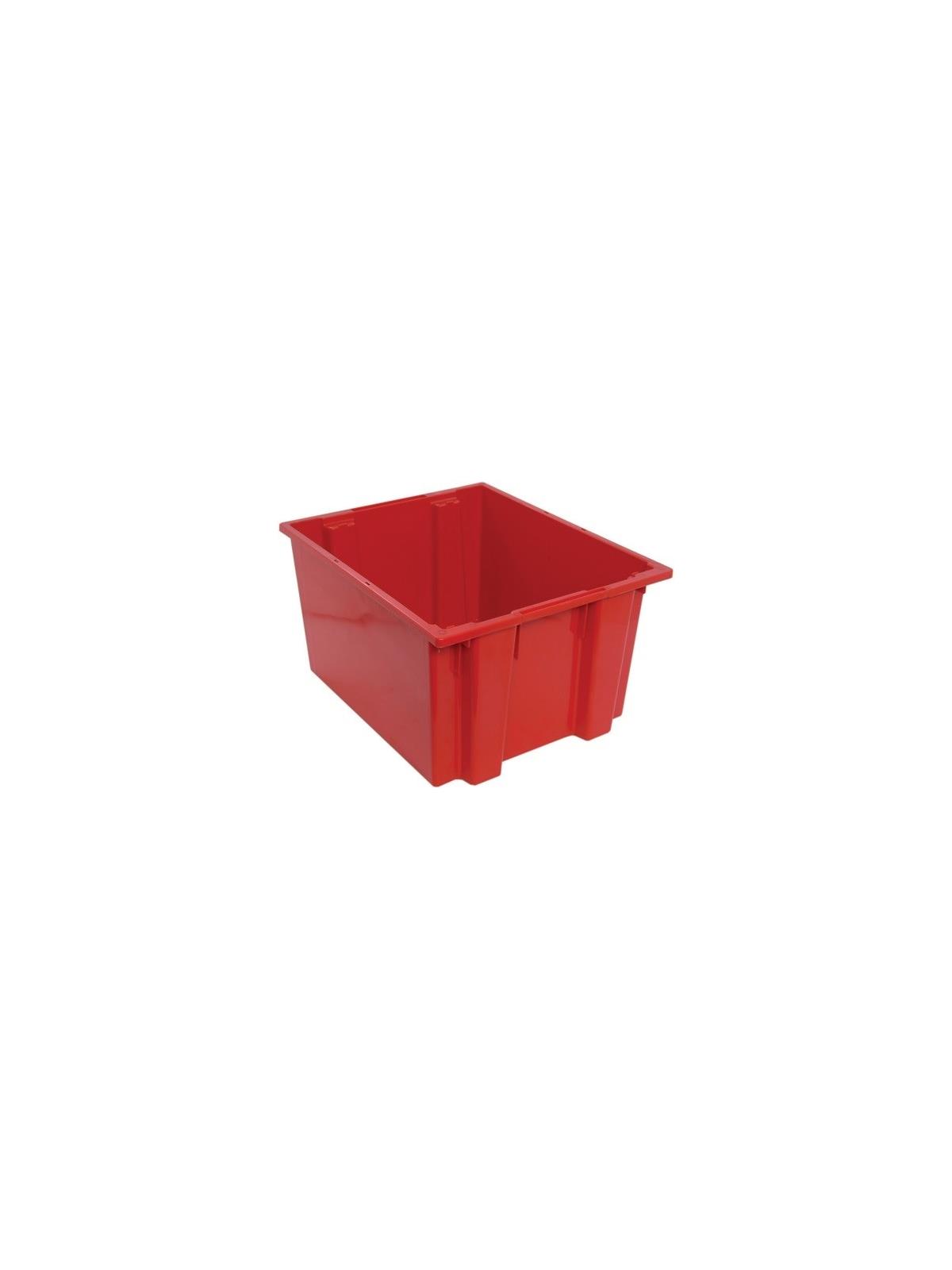 High density polypropylene, injection molded for uniform wall thickness and added strength. Lids snap tightly and securely for a safe fit. Quick 180° turn offers space-saving stacking and nesting. Stacks 6 high. Fits 48" x 40" pallets (6 SNT190, 4 SNT230 per level). Usable in temperatures from -­10° to 250°F. Available in Gray, Blue, Red or Clear. Optional clear, see-thru Stack and Nest Label Holder (HSNH010) and optional Dolly (HDLY-3018) available. FOB Shipping Point.