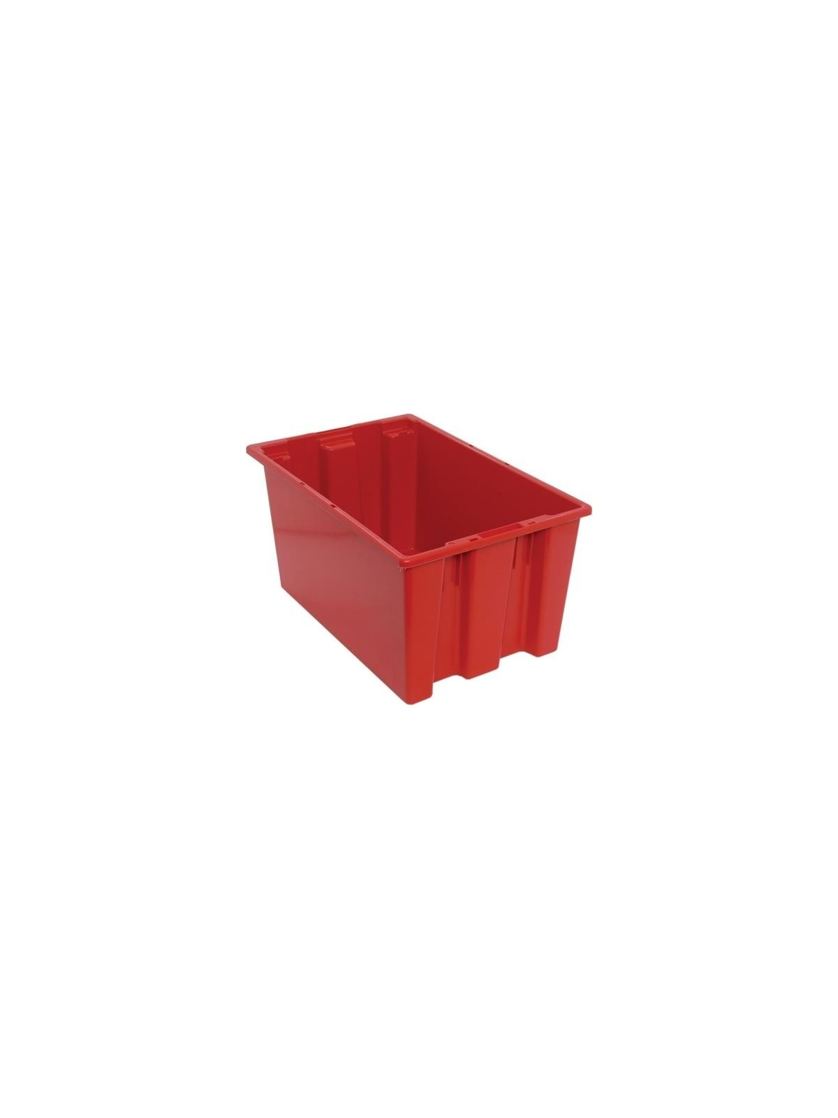 High density polypropylene, injection molded for uniform wall thickness and added strength. Lids snap tightly and securely for a safe fit. Quick 180° turn offers space-saving stacking and nesting. Stacks 6 high. Fits 48" x 40" pallets (6 SNT190, 4 SNT230 per level). Usable in temperatures from -­10° to 250°F. Available in Gray, Blue, Red or Clear. Optional clear, see-thru Stack and Nest Label Holder (HSNH010) and optional Dolly (HDLY-3018) available. FOB Shipping Point.