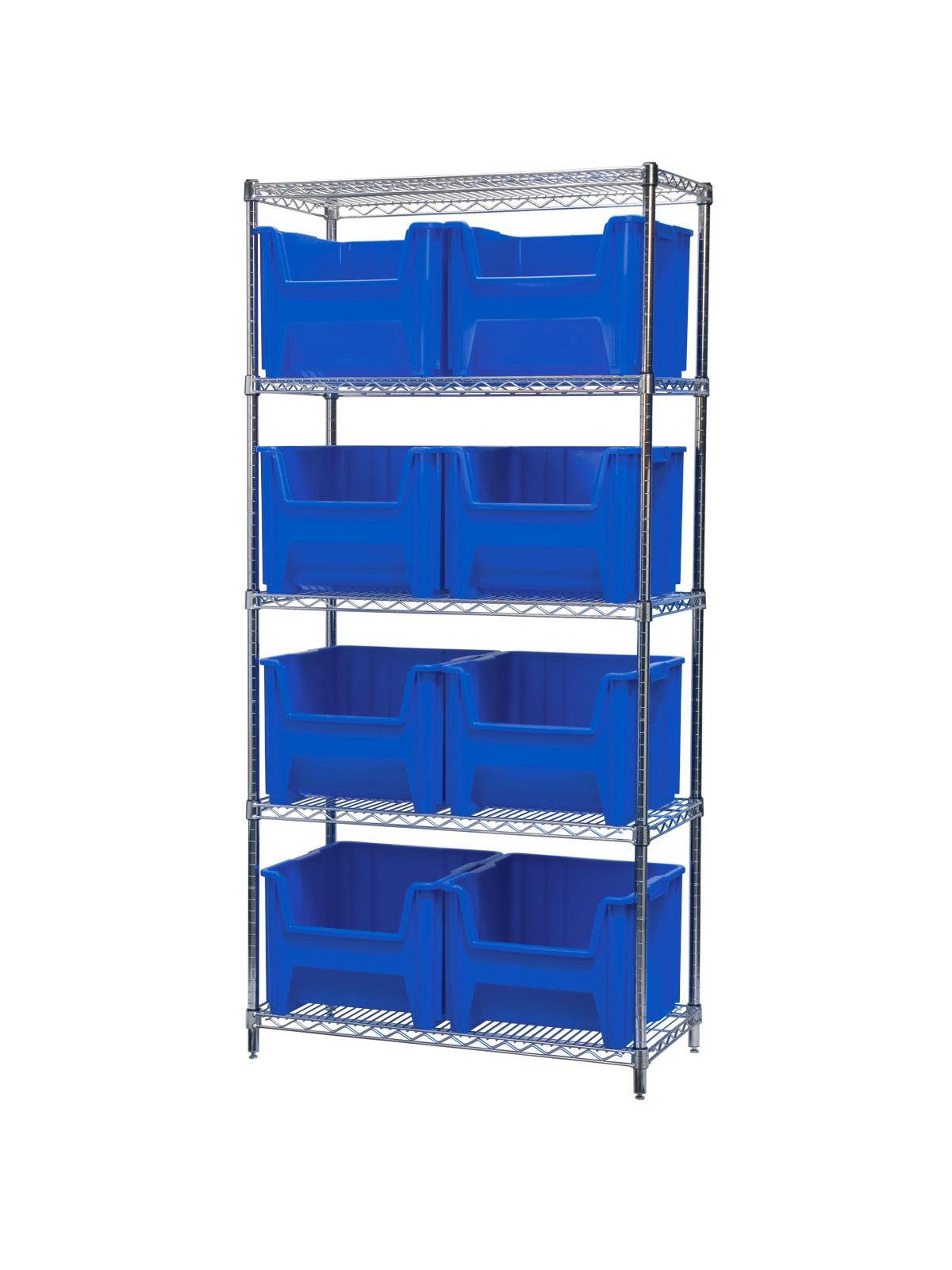 Available with shelves and come with 8, 9 or 12 bins. Bins feature a wide hopper front for easy access. Bins available in Blue, Red, or Gray. FOB Shipping Point.