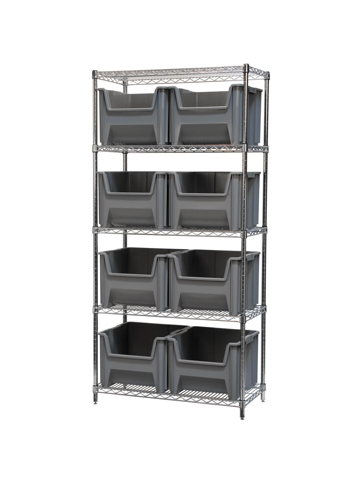 Available with shelves and come with 8, 9 or 12 bins. Bins feature a wide hopper front for easy access. Bins available in Blue, Red, or Gray. FOB Shipping Point.