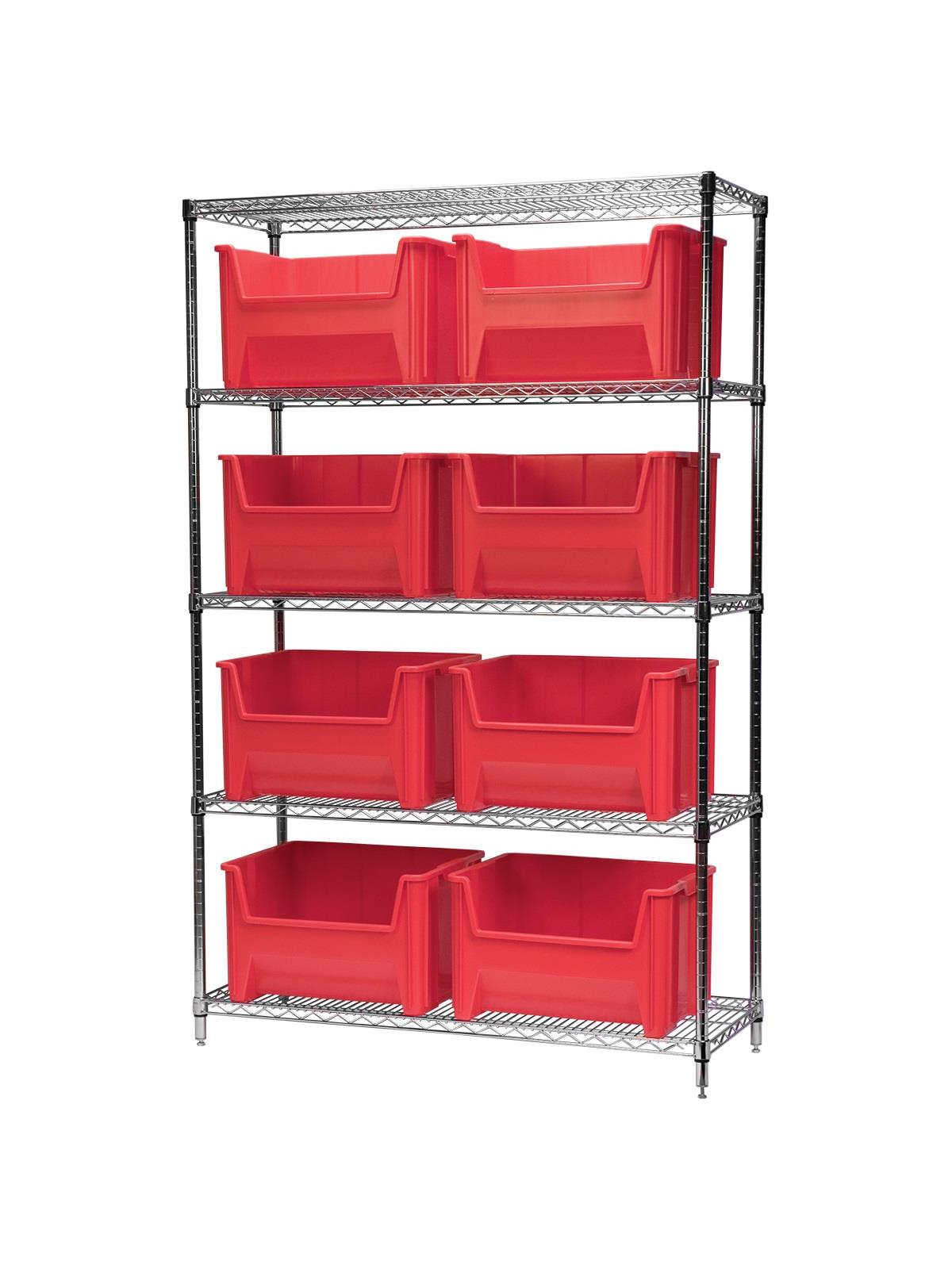 Available with shelves and come with 8, 9 or 12 bins. Bins feature a wide hopper front for easy access. Bins available in Blue, Red, or Gray. FOB Shipping Point.