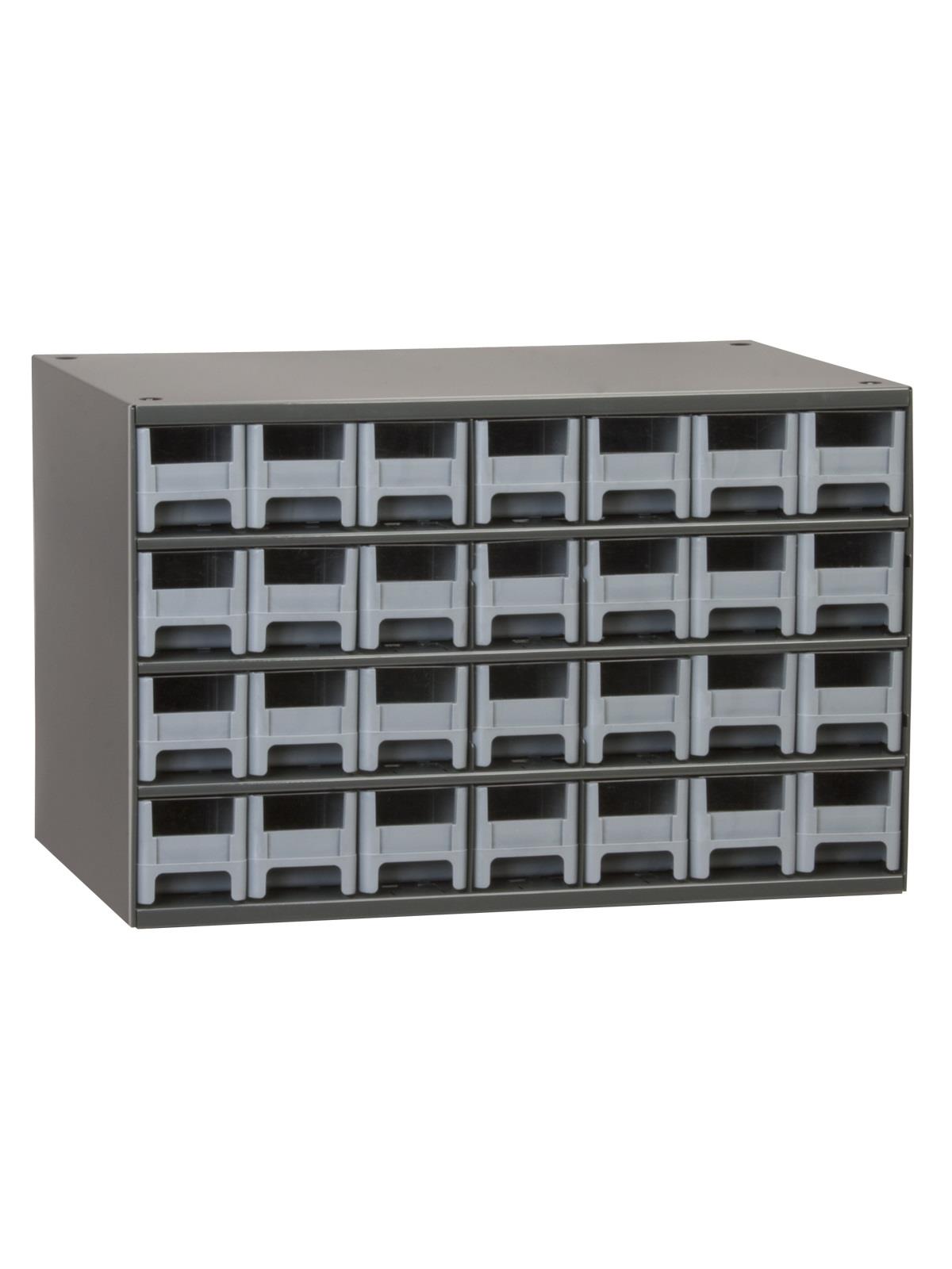 Drawers are removable and are rust, corrosion and dent proof. No sharp edges to damage parts. Unique rear stop tab on each drawer prevents spills. Includes one drawer color per cabinet - Gray in color. FOB Shipping Point.