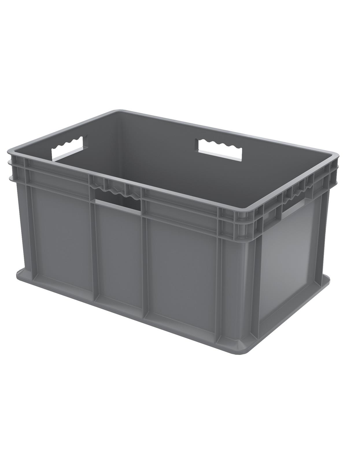 These straight wall containers have smooth inner walls that make cleaning easy and sanitary. The mesh sides allow excellent hot or cold air ventilation. Manufactured from injection-molded high-density polyethylene. Available in 4 sizes and 3 styles. Gray in color. FOB Shipping Point.