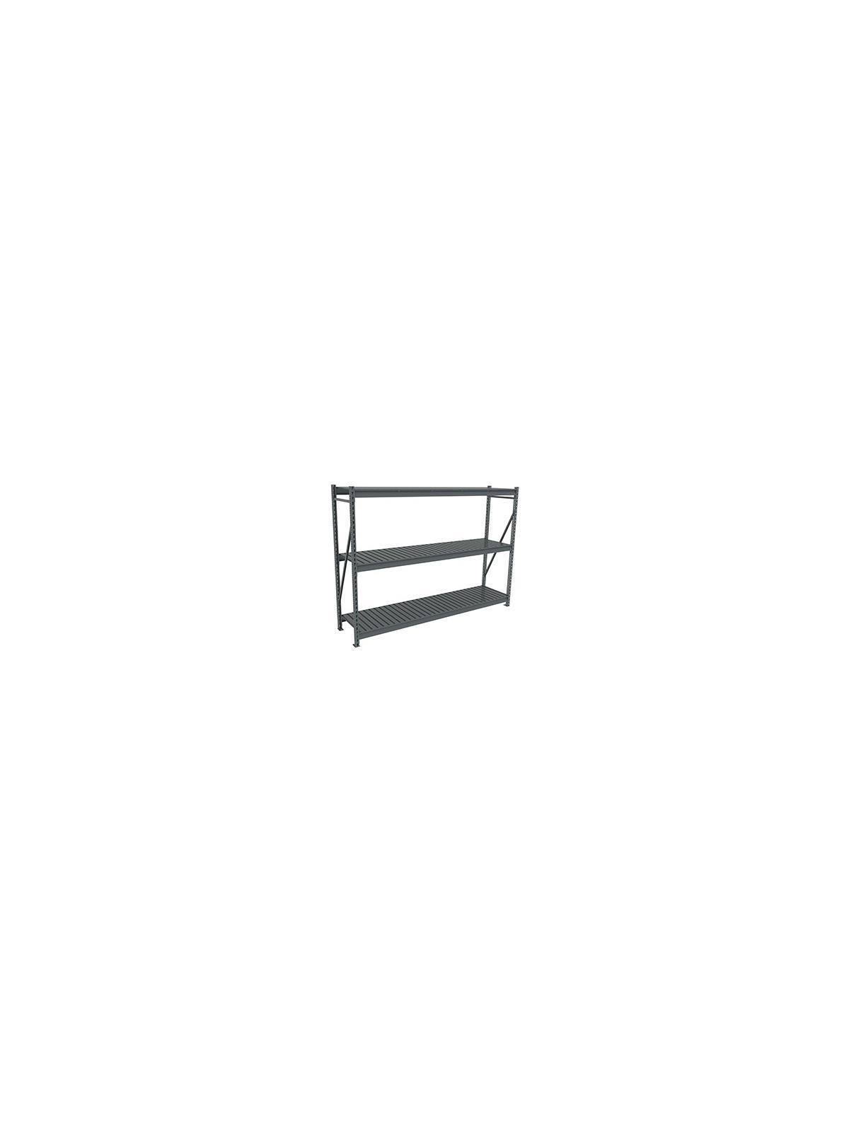 Features adjustable shelves on 2" increments for maximum use of vertical space. Assembly is quick and easy -- beams attach to the frames in seconds without tools. Rolled formed steel beams provide support at front and rear of shelf edges. Additional support is provided by front-to-back center braces. Racks are available in heights of 72", 96" and 120"; widths of 48", 72" and 96" and depths of 24", 36" and 48". Select particleboard decking or corrugated steel decking. Starter units and add-on units have 3 shelf levels.  Additional shelf levels are available to increase capacity. Begin each row of shelving with a starter and use add-on units to complete row. Medium Gray powder-coated paint finish. Note -- bulk storage racks should be hand loaded only. FOB Shipping Point.