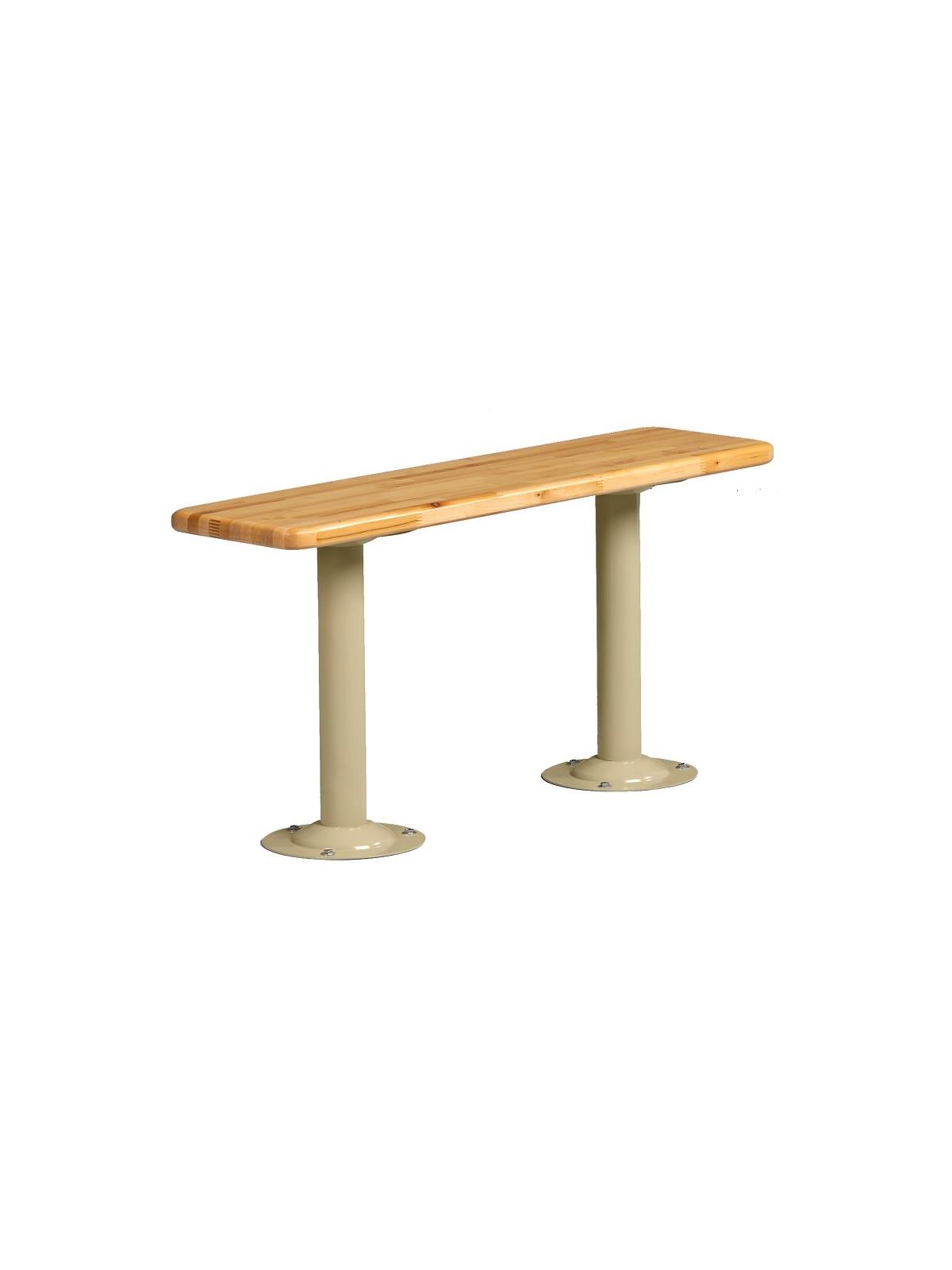 Laminated maple benches are protected with a clear lacquer finish. Benches are 1-1/4" thick and 9 1/2"W. They can be ordered in various lengths to meet your seating needs. Heavy-duty steel pedestals (with matching enamel finish to match lockers) are ordered separately. FOB Shipping Point.