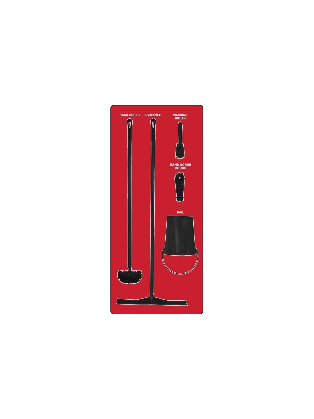Designed for wet environments, color code your cleaning tools for distinct purposes. Keep general maintenance and cleaning tools organized, neat and always ready for use. Minimize downtime searching for tools by keeping them in one centralized location. Available in a variety of materials to match your environment: Ultra Aluma-Lite™, and Accu-Shield™. 4 color options available with your choice of either black or white tool shadows. Ideal for non-food contact & general maintenance. Promotes tool accessibility at point of use benefits. Maximizes efficiency, organization and accessibility. Minimizes wasted travel time to supply rooms/closets. Provides easy and fast janitorial solutions without added physical stress. Shadow Board Dimensions: 68"H x 30"W. Features 1/2" rounded corners and 3/8" mounting holes. Boards include mounting hardware for tools. Some assembly required: instruction and assembly hardware included. Due to size and/or weight, this product may need to ship LTL. FOB Shipping Point.