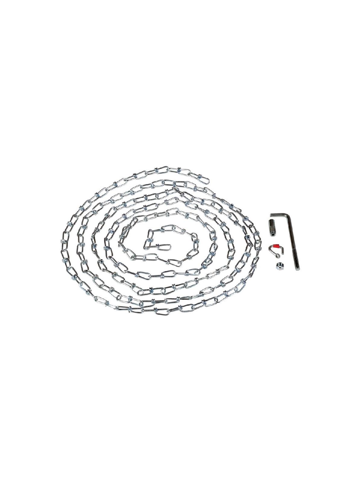 Chain and Hangers - Discourage theft and misplacement of wheel chocks. Facilitate safety in the dock area. 15' chain attaches to the hanger. Hanger is then secured to the dock wall. Chain is fastened to the chock with cold shut.