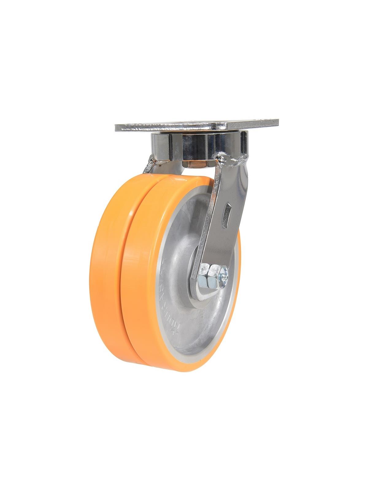 Arguably the most ergonomic caster in the market. Made of premium grade polyurethane. The independent dual wheels allow for sharp turns with the smallest radius. This is coupled with a state-of-the-art double precision raceway that provides one of the tightest, smoothest swivels in the industry. FOB Shipping Point.