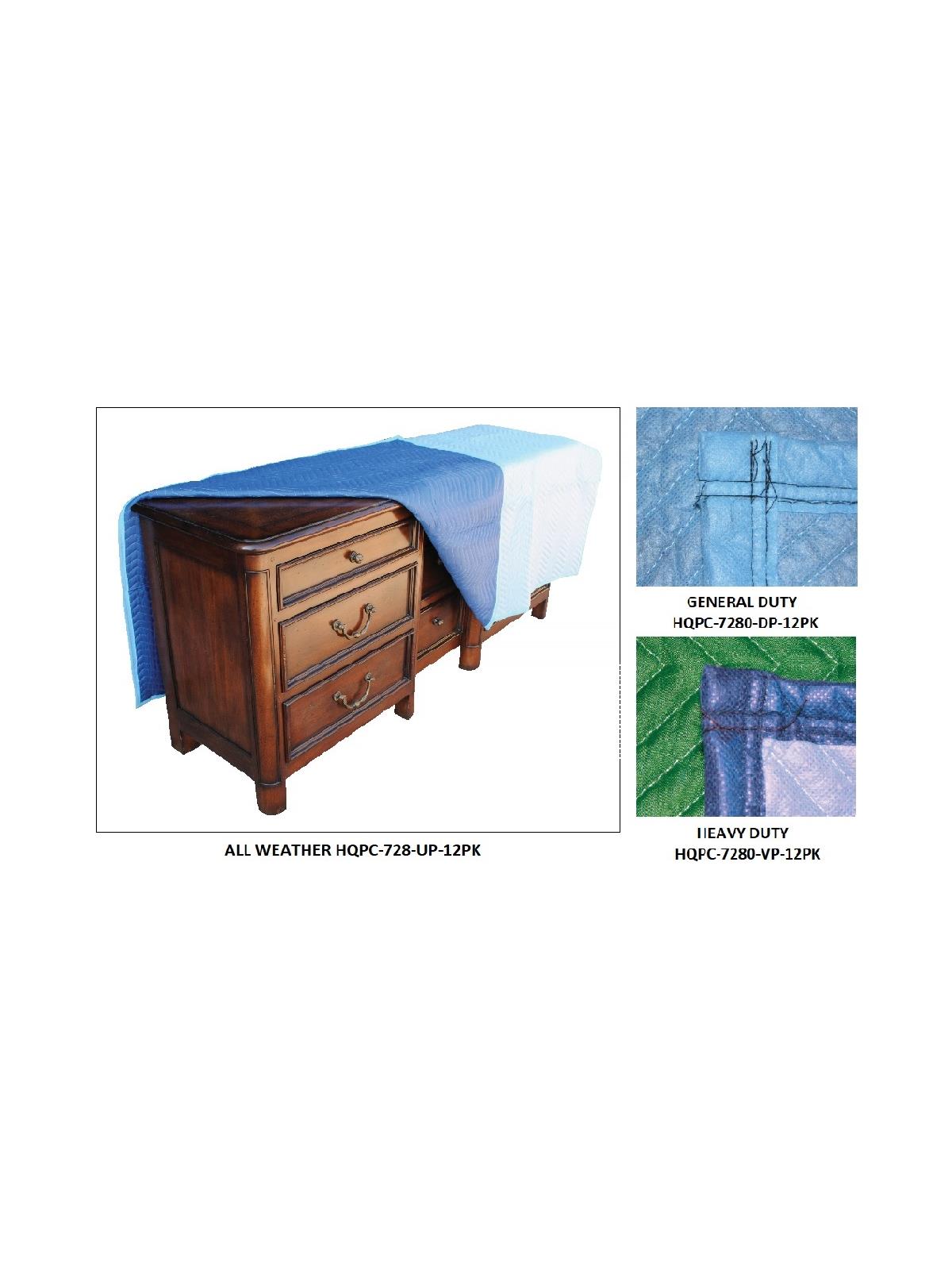 Cushion and protect furniture, machinery, and electronic equipment. Each pad measures 72" wide by 80" long. Units are sold a dozen at a time. FOB Shipping Point.